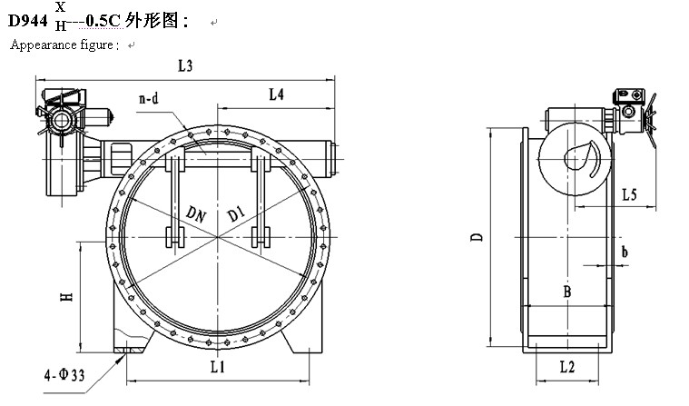 DN | D | D1 | B | b | n-d | H | L2 | L3 | L4 | L5 | 電動裝(zhuang)置 Electric device | W(Kg ) | |