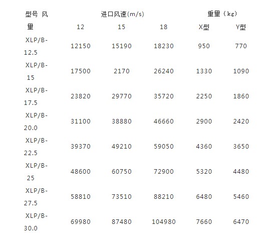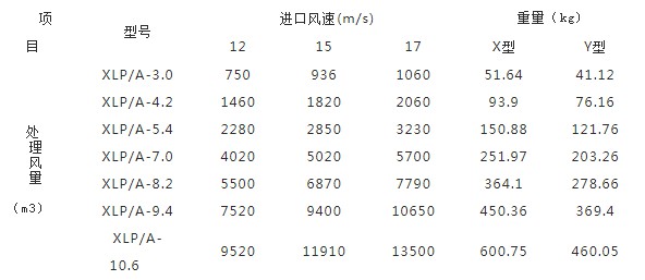 XLP/A型性(xìng)能參數表: