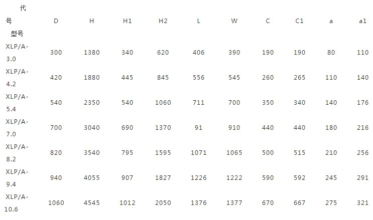 XLP(3.0-10.6)型外(wài)形尺寸表: